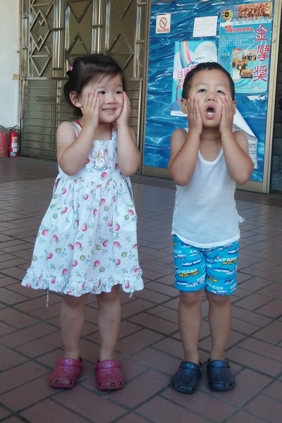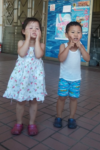 兩個人從小就非常愛玩水也一點都不怕水,學游泳這件事從嬰兒時期我就一直擺在心裡。只可惜新竹的嬰兒泳課不多,泳課的時間和兩人的作息又無法配合(我覺得規律的正常作息是最重要的),只好作罷,但是仍舊一直在找合適的機會讓沛沛澐澐上泳課。終於在兩人生日前一天,在略微縮短午睡的狀態下,讓他們試上了第一堂的游泳課,兩人上課上的好開心。下課時,沛沛意猶未盡的一直問:『為什麼下課了?為什麼下課了?』,遲遲捨不得上岸。我想,兩人應該都很滿意媽媽送的這個生日禮物吧!