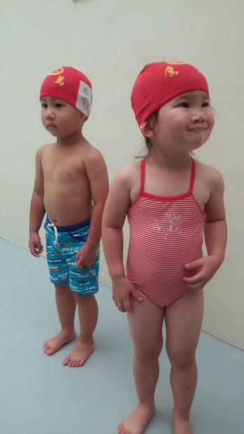 【2015/06/17, Wed.,滿三歲前一天,沛沛澐澐上了第一堂游泳課(嬰兒班)】