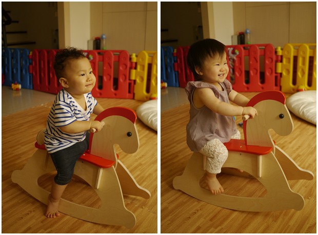 * 2015/06/14,沛沛澐澐 2y11m27d。首圖的照片是沛沛澐澐最後一次騎 Hape 搖搖馬。雖然木馬還很勇健,但是兩人已經長大,很少騎木馬,而且很容易用力過猛騎到翻馬,準備把木馬傳承給小馬弟弟。移交前,最後一騎,跟木馬道別。